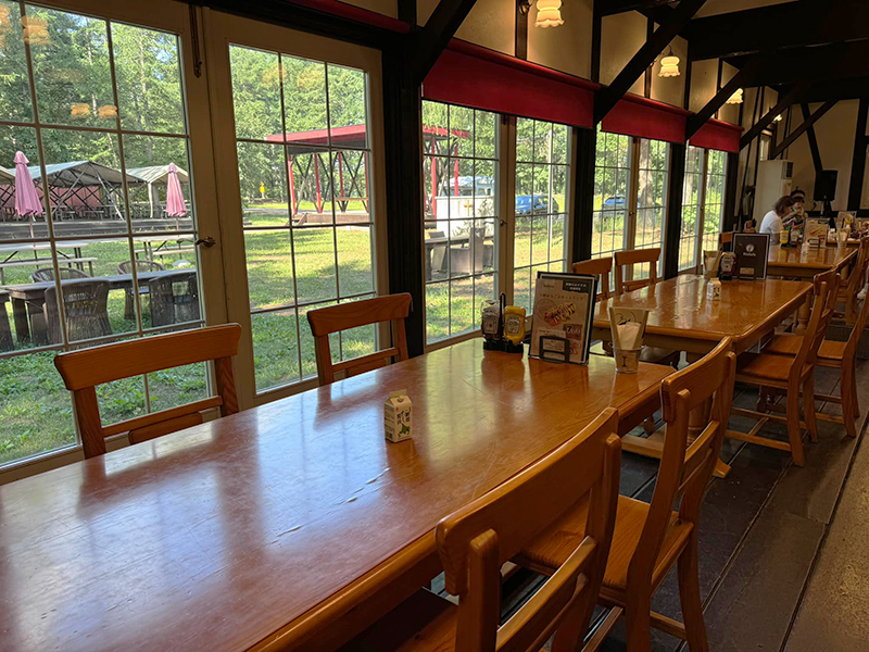 窓越しに見える木々には、エゾリスが挨拶に来ることも。