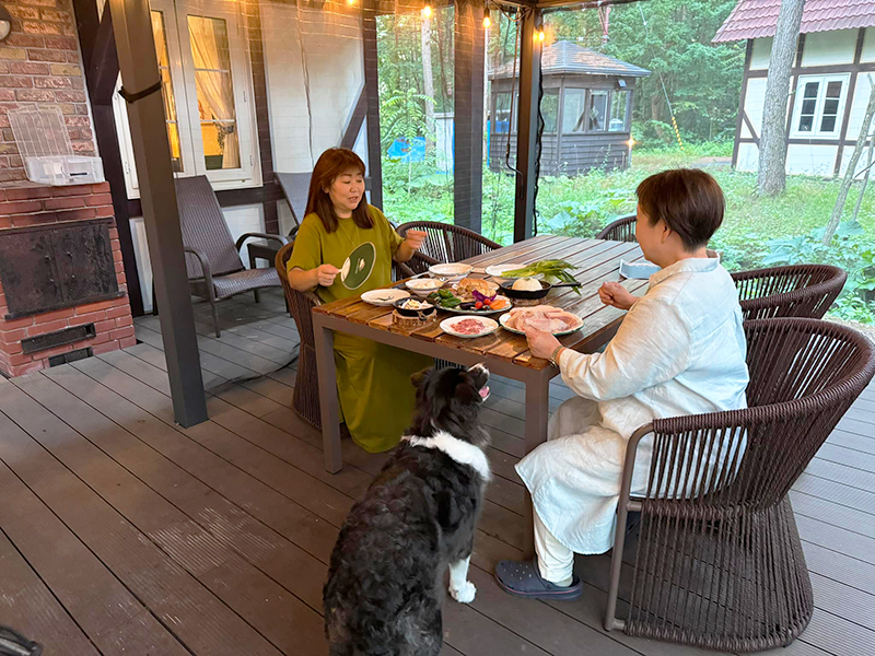 夏はBBQ、冬は暖かい暖炉を囲み、北海道・十勝の食材をふんだんに活かした料理を食べ、お酒を愉しむ。施設内にある温泉、サウナで時間を忘れ、究極のととのいを。