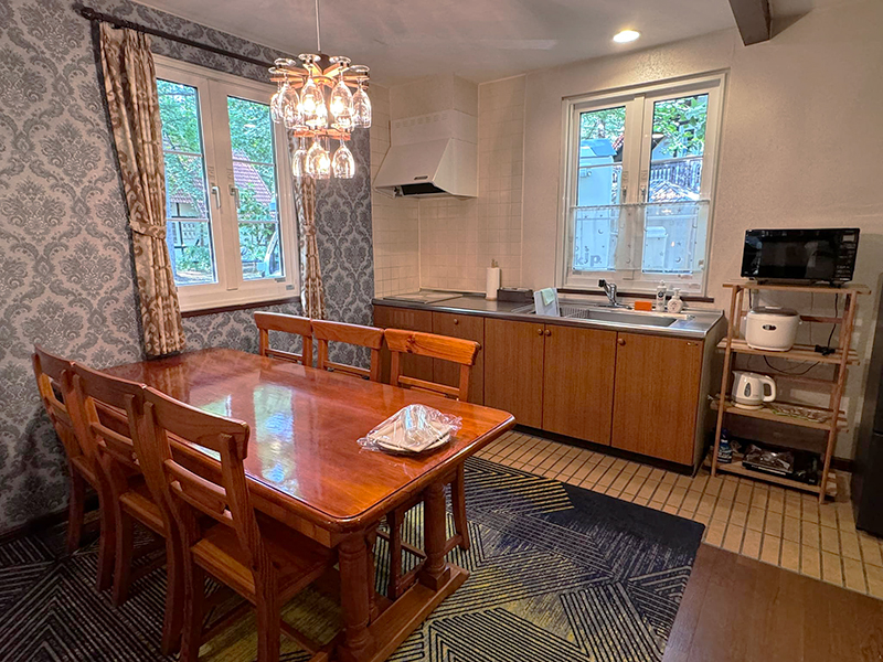 IHコンロ・カセットコンロ・冷蔵庫・電子レンジ・電気ケトル・炊飯器・包丁・まな板・トング・鍋・フライパン・ザル・ボウル・その他調理器具・加湿器(冬季のみ)・テレビ |