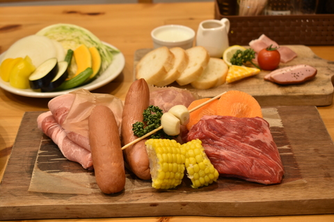 各トレーラールームすべてに併設されたBBQ棟に移動式のグリルがあり、晴れた日はウッドデッキで、雨の日はBBQ棟の中で極上のグランピング料理を楽しめます。