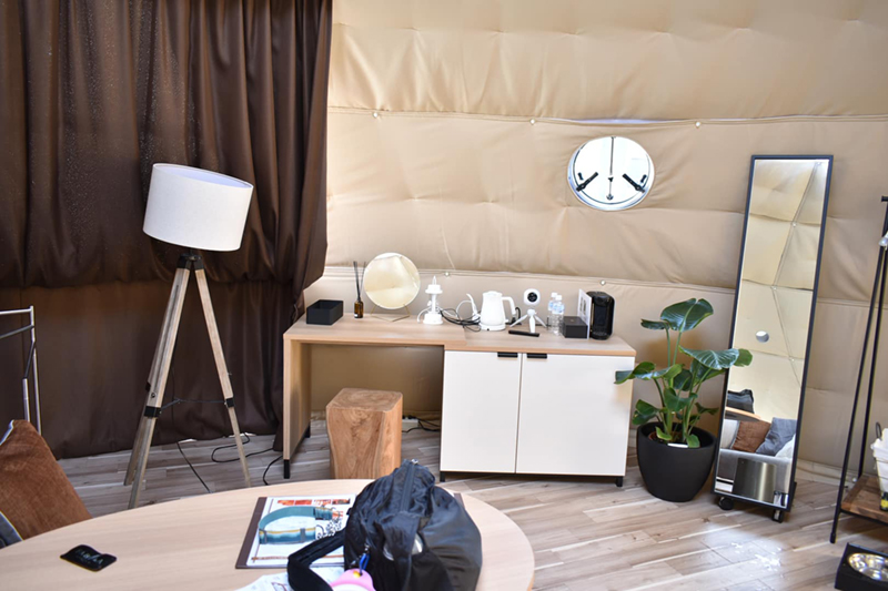 初めてのグランピングにおすすすめ!充実の設備。各ウッドデッキに建てられたドームテント。デッキ内に、露天風呂・シャワールーム・ダイニングキッチン付き。プライベートが保たれた充実設備の空間でお過ごしいただけます。本館施設(大浴場等)も利用可能です。