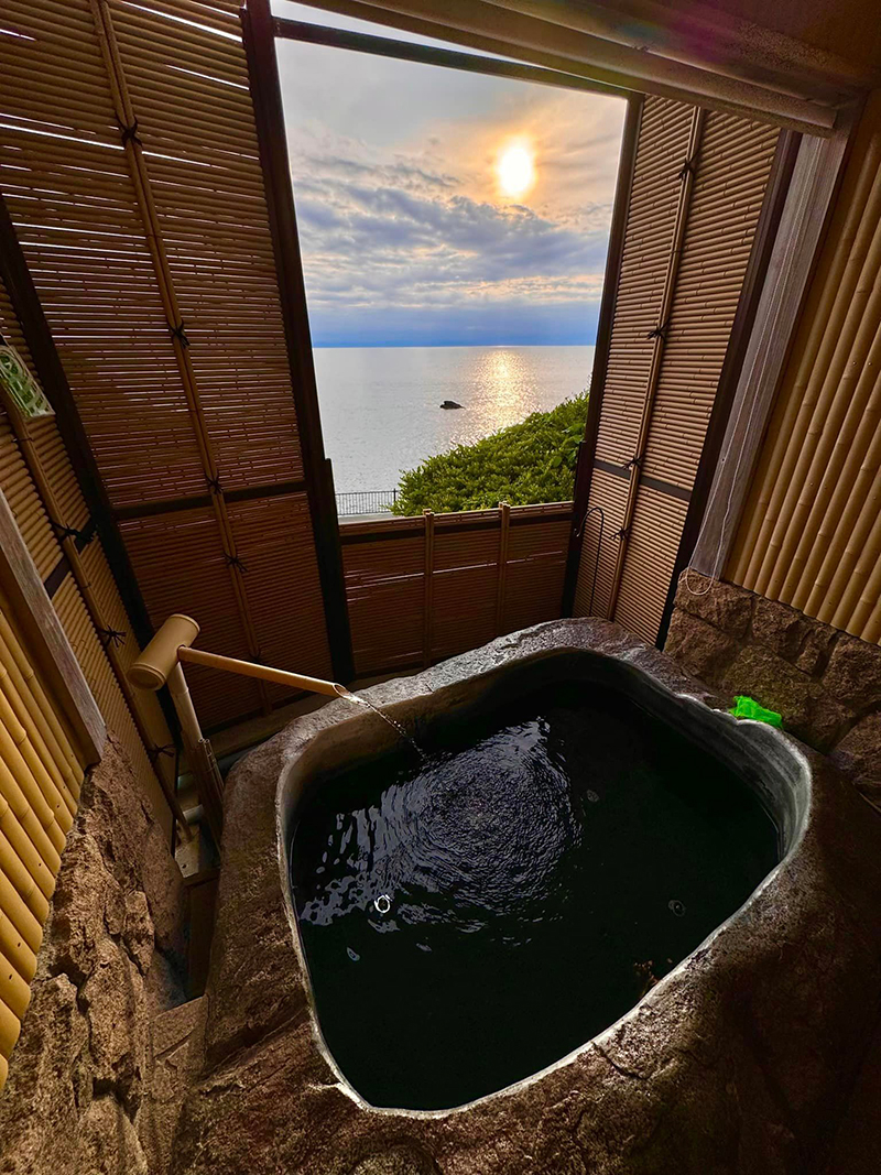 目の前が海なので遮る障害物が一切なく、西伊豆名物の夕日を露天風呂に浸かりながら見る時間はまさに圧巻。