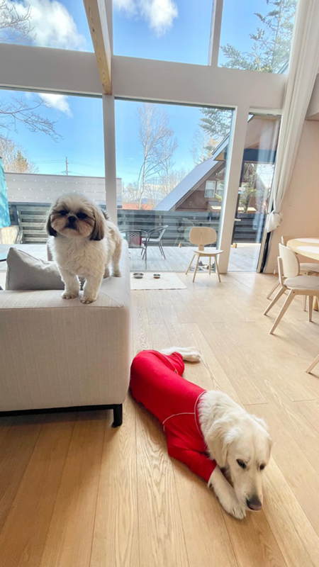 白で統一された内観はスタイリッシュな最新な作りとなっており、愛犬たちと長期で滞在したくなってしまう。