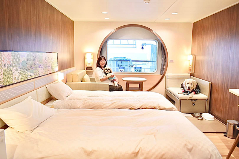 フェリー内に愛犬と同じ部屋の中で一緒に過ごせる”ウィズペットルーム”をご用意。移動時間中に狭いペットケージの中でストレスを感じることなく、ペットも飼い主様も、のびのびとした船旅を楽しんでいただけます。