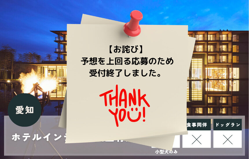 【当選発表】当選結果はメール(yoyaku@travelwithdog.com)にてお送りさせていただきます。