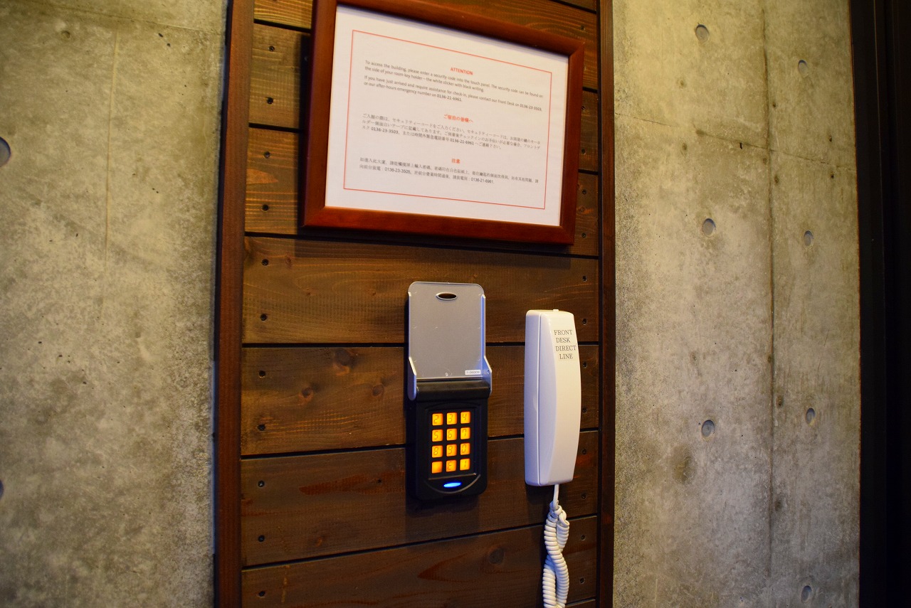 暗証番号タイプのオートロック式。お部屋は1F、2Fとあり、なんと、部屋が3ベッドルームありました!