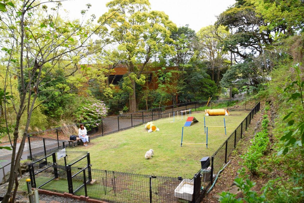 敷地内にドッグランがあり、宿の周辺は閑静な別荘地のため愛犬の散歩コースには困らない。部屋食、もしくは専用の個室で提供される伊豆懐石も絶品。愛犬と一緒に純和風旅館のハイクラスなもてなしに身を委ねてみてほしい。