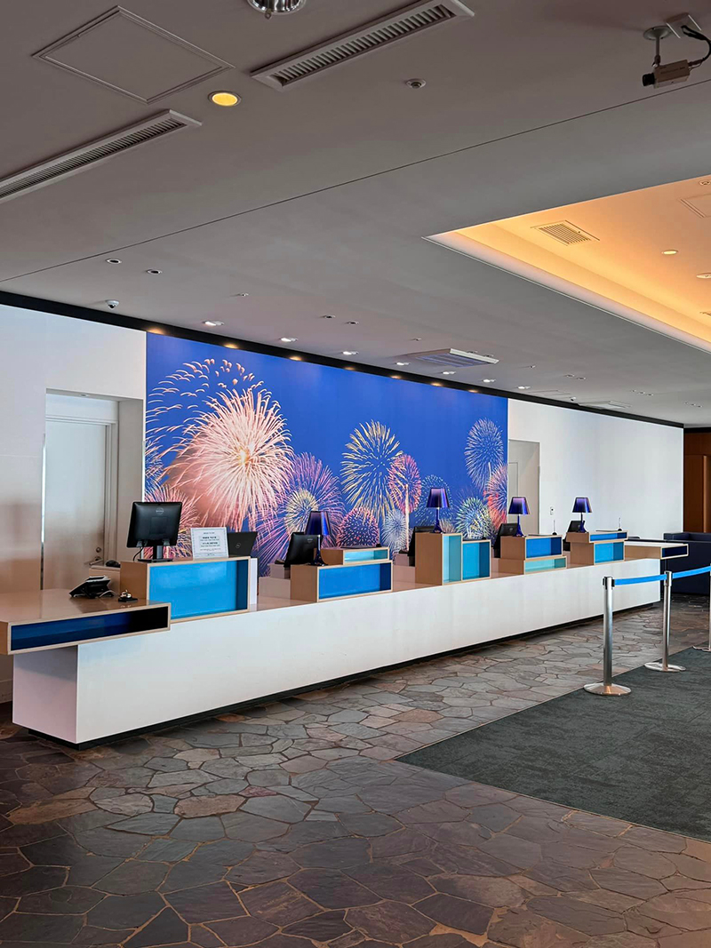 館内は熱海海上花火大会をモチーフに、至る所に花火の演出が施され、まるで花火会場に来たかの様な雰囲気。