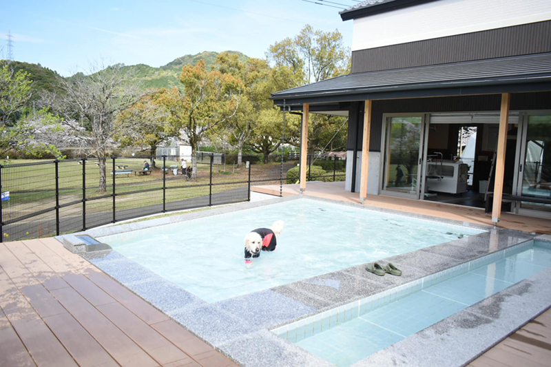 別邸わんこ日和は、熊本県の南部に位置し、不知火海へと続く湯浦川に面した自然豊かなところにございます。「家族(わんこ)と一緒に泊まれる温泉旅籠」をコンセプトに、家族で一緒に泊まり、じゃれ合い、笑い、味わい、温泉を楽しみ、心地よい風に触れる。